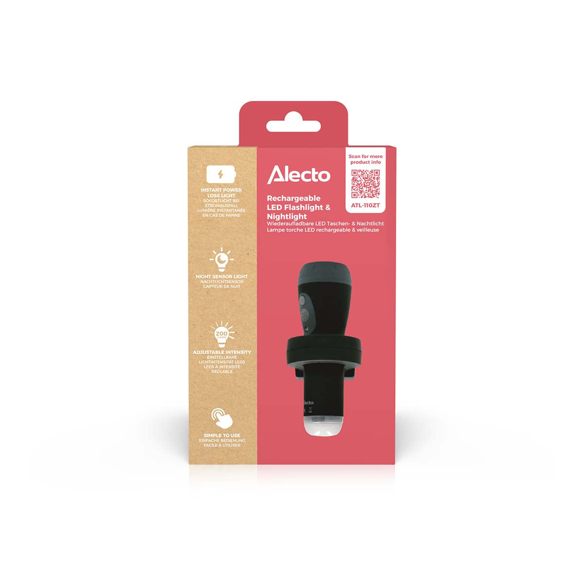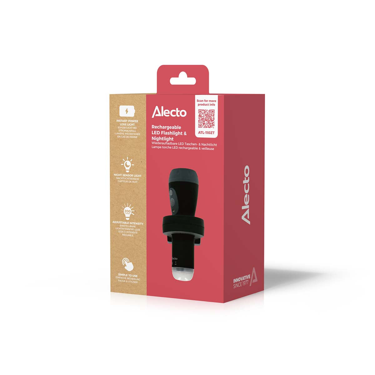 Ein Notlicht muss so intelligent und bequem zu bedienen sein, dass man nicht darüber nachdenken muss. Diese Notleuchte wird dem absolut gerecht. Dank einer Reihe großartiger Funktionen, wie z. B.: der Lichtsensor, der das Nachtlicht automatisch einschaltet, wenn es dunkel wird; das Ladegerät, das auch als Halterung fungiert, so dass das Licht immer aufgeladen ist. Die Einschaltautomatik bei Stromausfall, so dass Sie nie im Dunkeln stehen. Das automatische Einschalten des "großen Lichts", wenn Sie die Lampe aus der Halterung nehmen. Die einstellbare Lichtintensität. Mit dieser Notleuchte von Alecto entscheiden Sie sich für eine starke Marke. Unsere Produkte sind führend auf dem Markt. Mit über vierzig Jahren Erfahrung entwickeln wir (hauptsächlich) Elektronik, die alle Ihre Anforderungen erfüllt. Hohe Qualität zu einem attraktiven Preis.