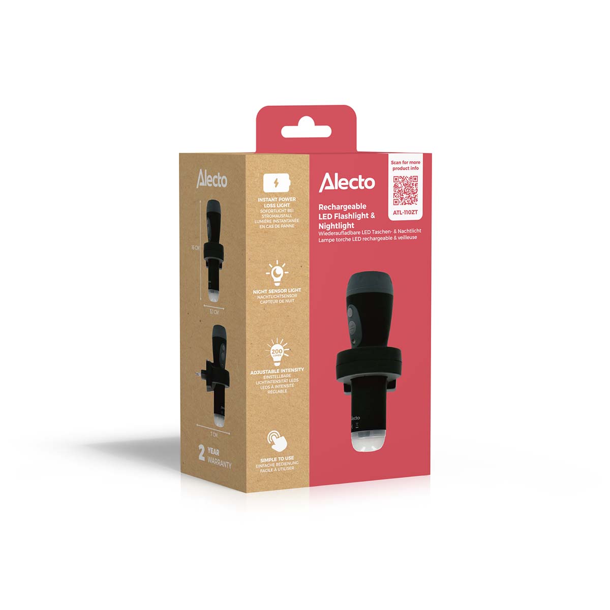 Ein Notlicht muss so intelligent und bequem zu bedienen sein, dass man nicht darüber nachdenken muss. Diese Notleuchte wird dem absolut gerecht. Dank einer Reihe großartiger Funktionen, wie z. B.: der Lichtsensor, der das Nachtlicht automatisch einschaltet, wenn es dunkel wird; das Ladegerät, das auch als Halterung fungiert, so dass das Licht immer aufgeladen ist. Die Einschaltautomatik bei Stromausfall, so dass Sie nie im Dunkeln stehen. Das automatische Einschalten des "großen Lichts", wenn Sie die Lampe aus der Halterung nehmen. Die einstellbare Lichtintensität. Mit dieser Notleuchte von Alecto entscheiden Sie sich für eine starke Marke. Unsere Produkte sind führend auf dem Markt. Mit über vierzig Jahren Erfahrung entwickeln wir (hauptsächlich) Elektronik, die alle Ihre Anforderungen erfüllt. Hohe Qualität zu einem attraktiven Preis.