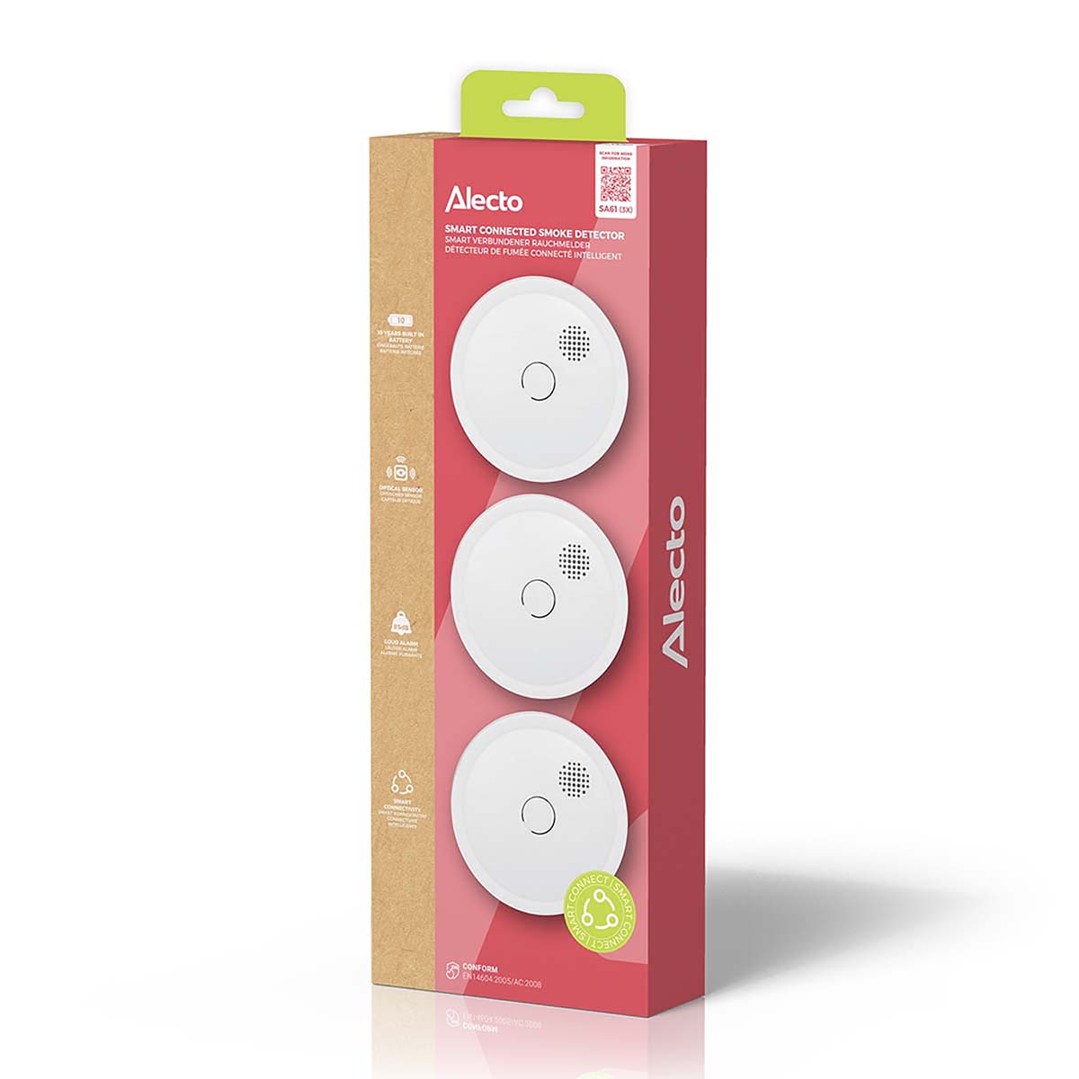 Der Alecto SA61 3X ist ein Set aus drei Rauchmeldern (Typnummer SA61), die drahtlos miteinander gekoppelt werden können. Dies sorgt für zusätzliche Brandsicherheit. Ihre Umgebung ist optimal geschützt, denn wenn ein Melder Rauch oder Feuer erkennt, lösen alle gekoppelten Rauchmelder Alarm aus. Dieser drahtlos koppelbare Rauchmelder verfügt über eine Batterie und einen optischen Sensor mit einer Lebensdauer von jeweils 10 Jahren. Mit dem SA61 3X sind Sie 10 Jahre lang auf eine sichere Umgebung eingestellt. Selbstverständlich erfüllt dieser Rauchmelder die höchsten europäischen Prüfungen und Anforderungen.