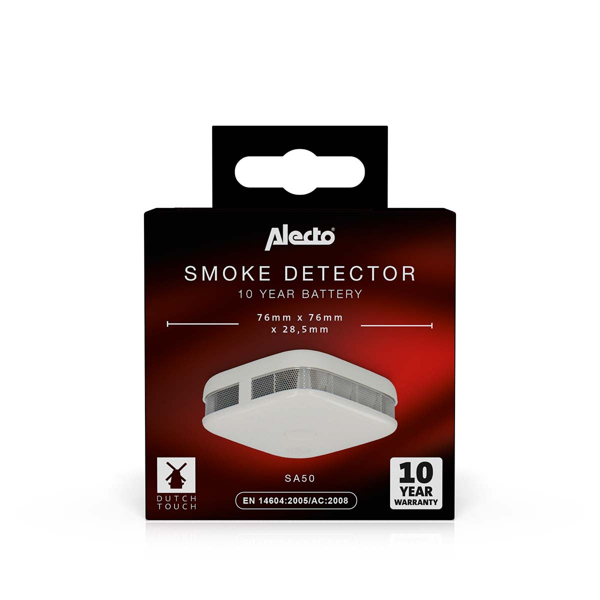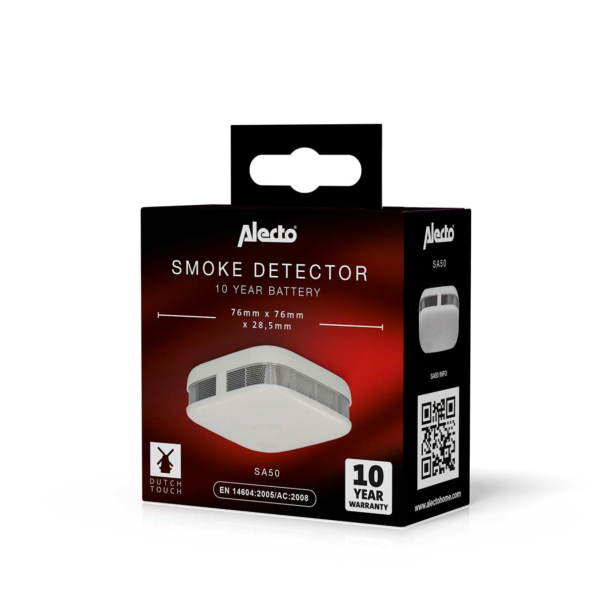 Der Alecto SA50 ist ein kompakter Rauchmelder mit einem eleganten Design. Dieser zertifizierte Rauchmelder verfügt nicht nur über einen Sensor, der zehn Jahre hält, sondern auch über eine Batterie mit gleicher Lebensdauer. Er wird mit einer 10-Jahres-Garantie geliefert. Bei Rauch oder Feuer im Haus löst der Melder umgehend Alarm aus. Mit 85 Dezibel ist der Alarm laut genug, sodass Sie ihn selbst im Schlaf sicher hören werden.