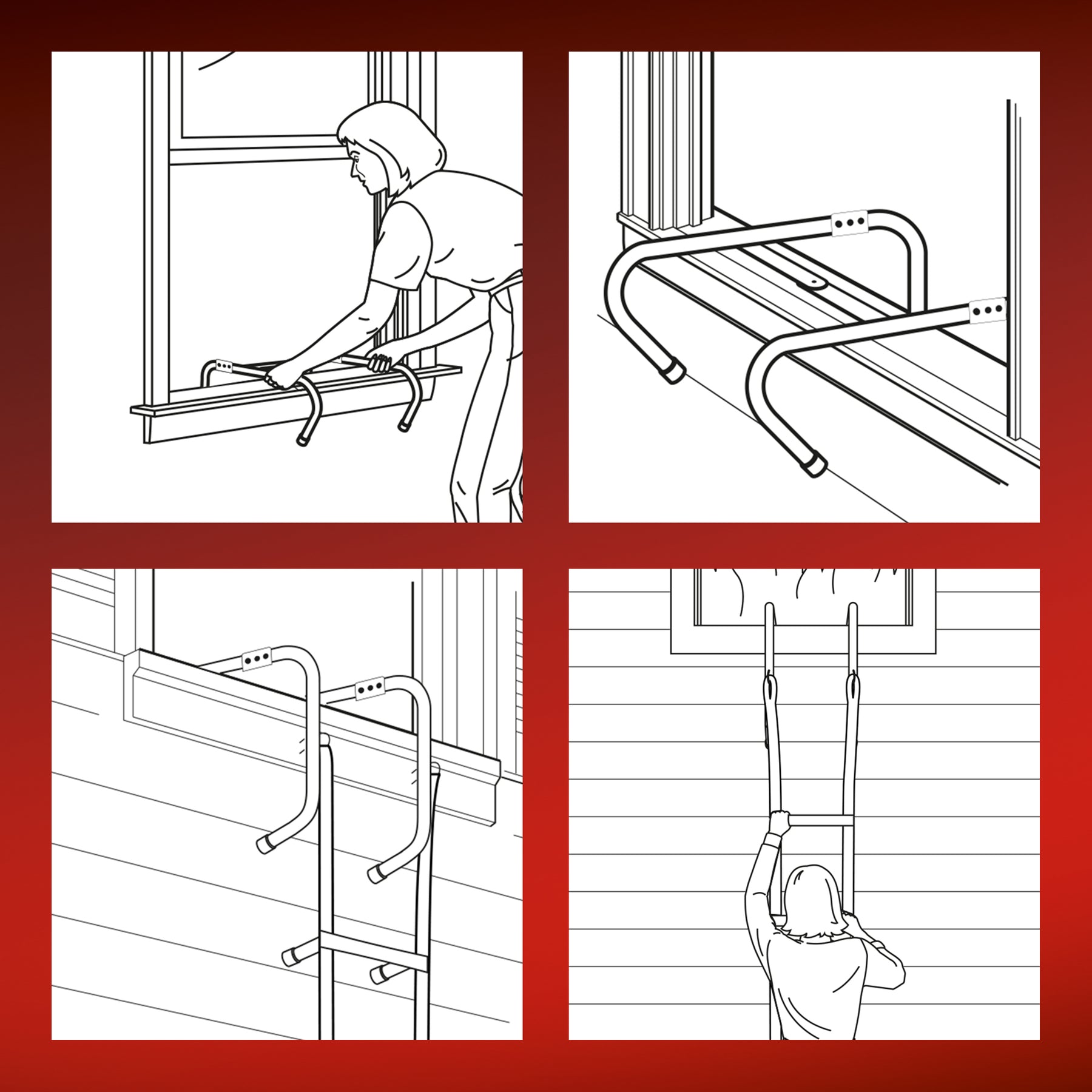 Es ist immer eine gute Idee, die Rettungsleiter mit anderen vorbeugenden Maßnahmen zu kombinieren, z. B. mit einem Brandmelder. Sollte es trotzdem zu unerwarteten Notfällen kommen, ist es gut, wenn jeder in Ihrem Haushalt weiß, wo sich die Rettungsleiter befindet. Die Rettungsleiter bringt Sie und Ihre Familienmitglieder in vier Schritten in Sicherheit:
