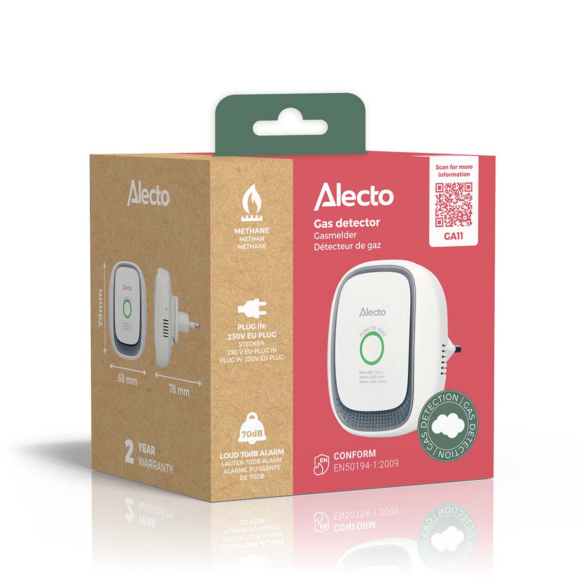 Mit dem Gasmelder Alecto GA11 in Ihrem Haus werden Sie umgehend alarmiert, wenn giftige Gase freigesetzt werden. Dieser Gasmelder dient ausschließlich dazu, Sie zu alarmieren, wenn Erdgas, auch bekannt als Methan, erkannt wird. Der Gasmelder ist ein Plug & Play-Gerät, dass Sie direkt in die Steckdose stecken und schon funktioniert es. Verwenden sollten Sie ihn in der Nähe einer Gasquelle, z. B. eines Warmwasserboilers, Heizkessels oder Gaskochers. Neben einem deutlichen akustischen Alarm gibt der GA11 auch über einen rot leuchtenden LED-Ring einen optischen Alarm aus.