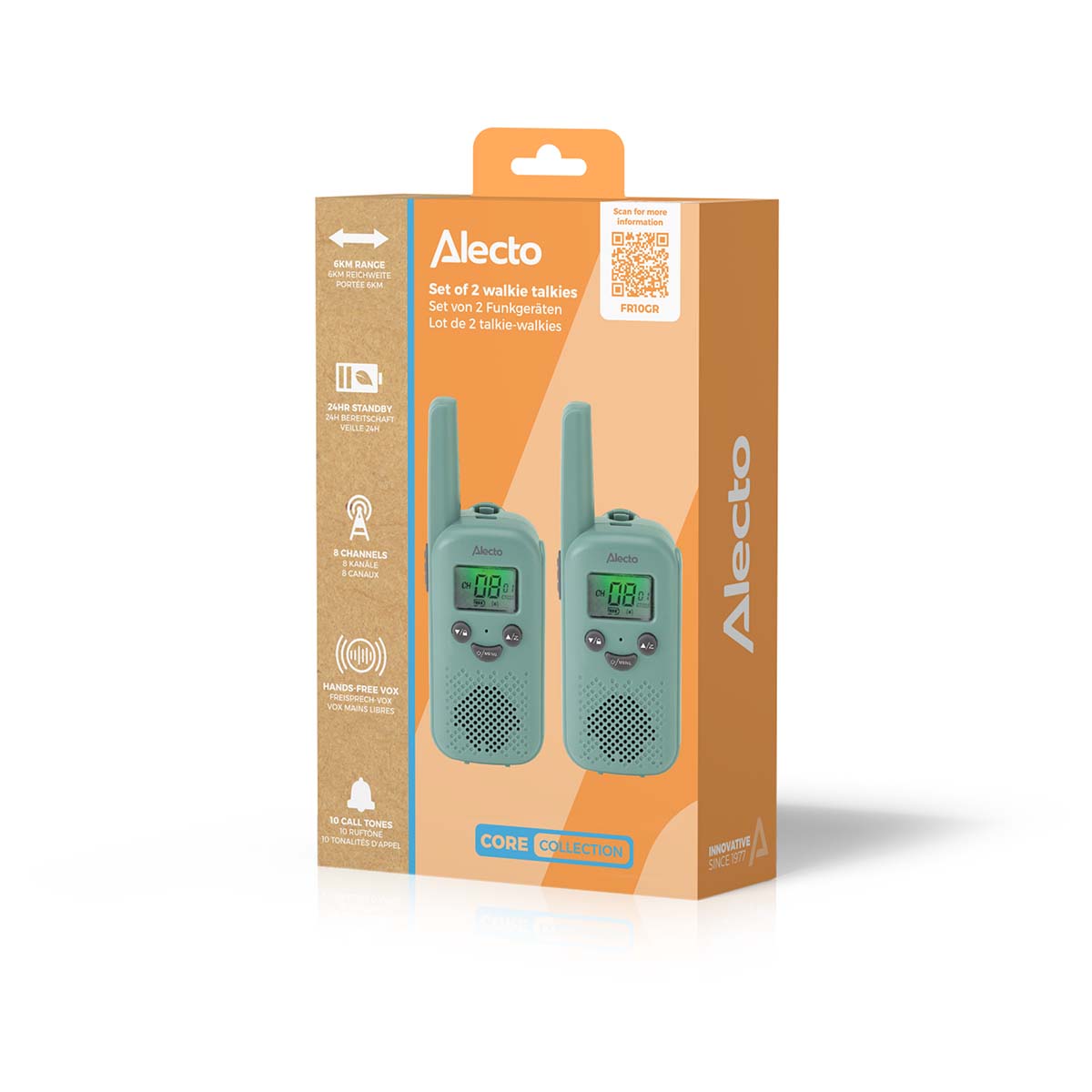 Mit dem Alecto FR10GR gibst du Kindern eine spielerische Möglichkeit, in Kontakt zu bleiben, während du sicher sein kannst, dass sie ein zuverlässiges und kinderfreundliches Produkt verwenden. Bereit für stundenlangen Spielspaß, drinnen und draußen.