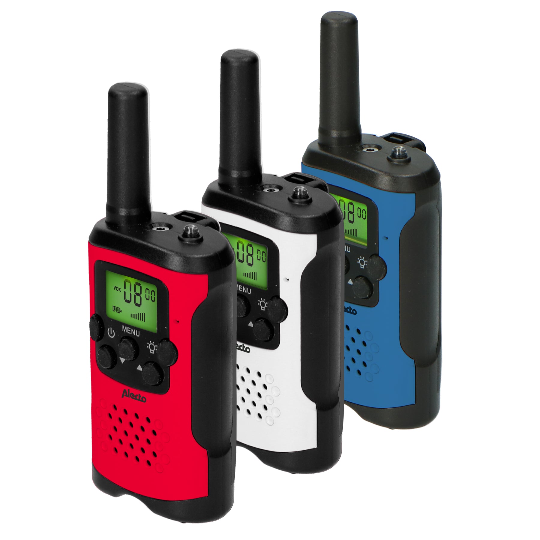 - Set von 3 Funkgeräten in den Farben rot, weiß, blau