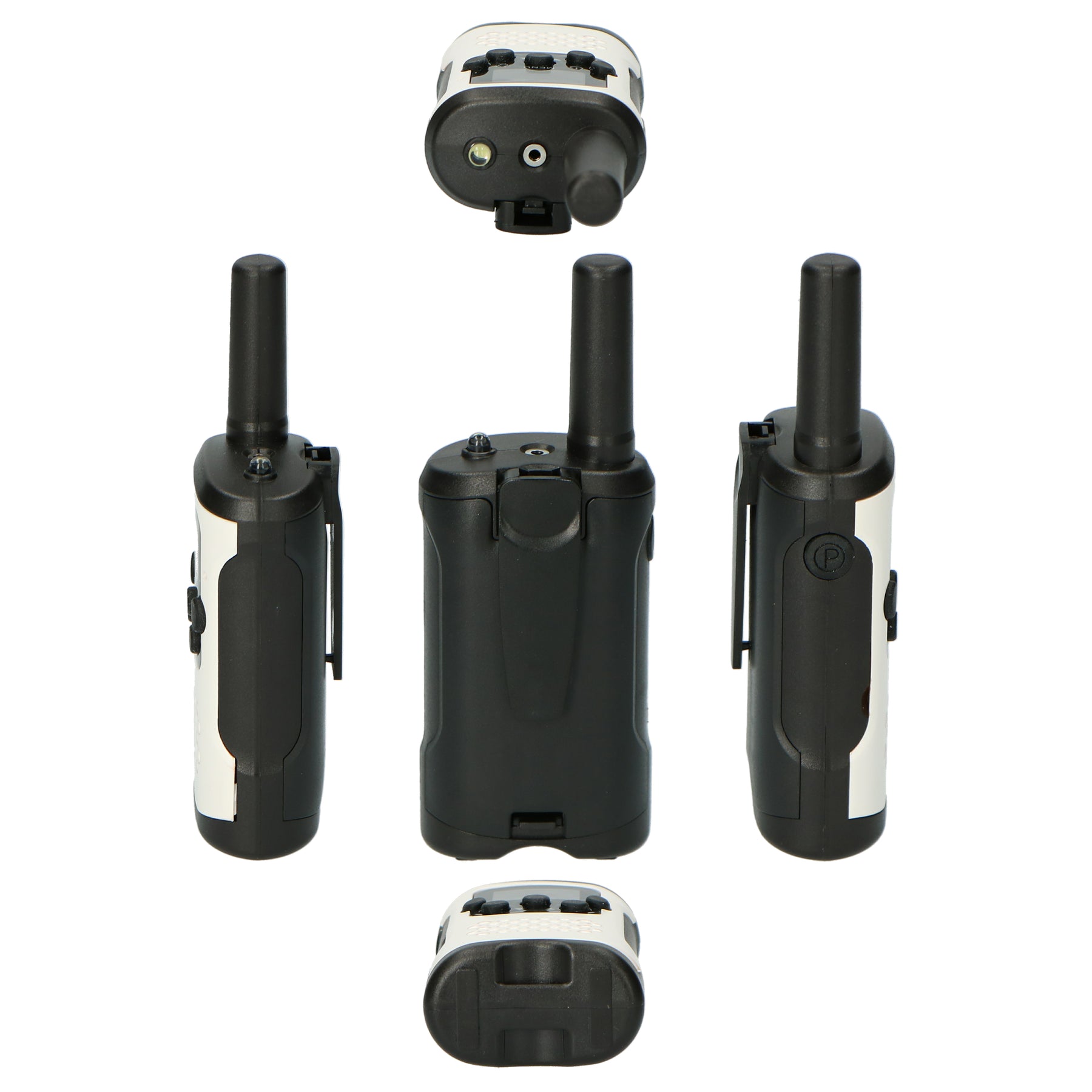 Diese Outdoor-Walkie-Talkies ermöglichen es während jeder Aktivität gut und gratis miteinander in Verbindung zu bleiben. Dieses Set hat einen Gürtelclip und eine kompakte Größe. Die Walkie-Talkies verwenden 8 Kanäle und suchen selbst die verfügbaren Kanäle. Darüber hinaus ist es ungemein praktisch, dass dieses Set auch mit dem Alecto FRH-10 Headset verwendet werden können, sodass Sie Ihre Hände frei halten. Dadurch können Sie die Walkie-Talkies auch während des Autofahrens legal und sicher verwenden.