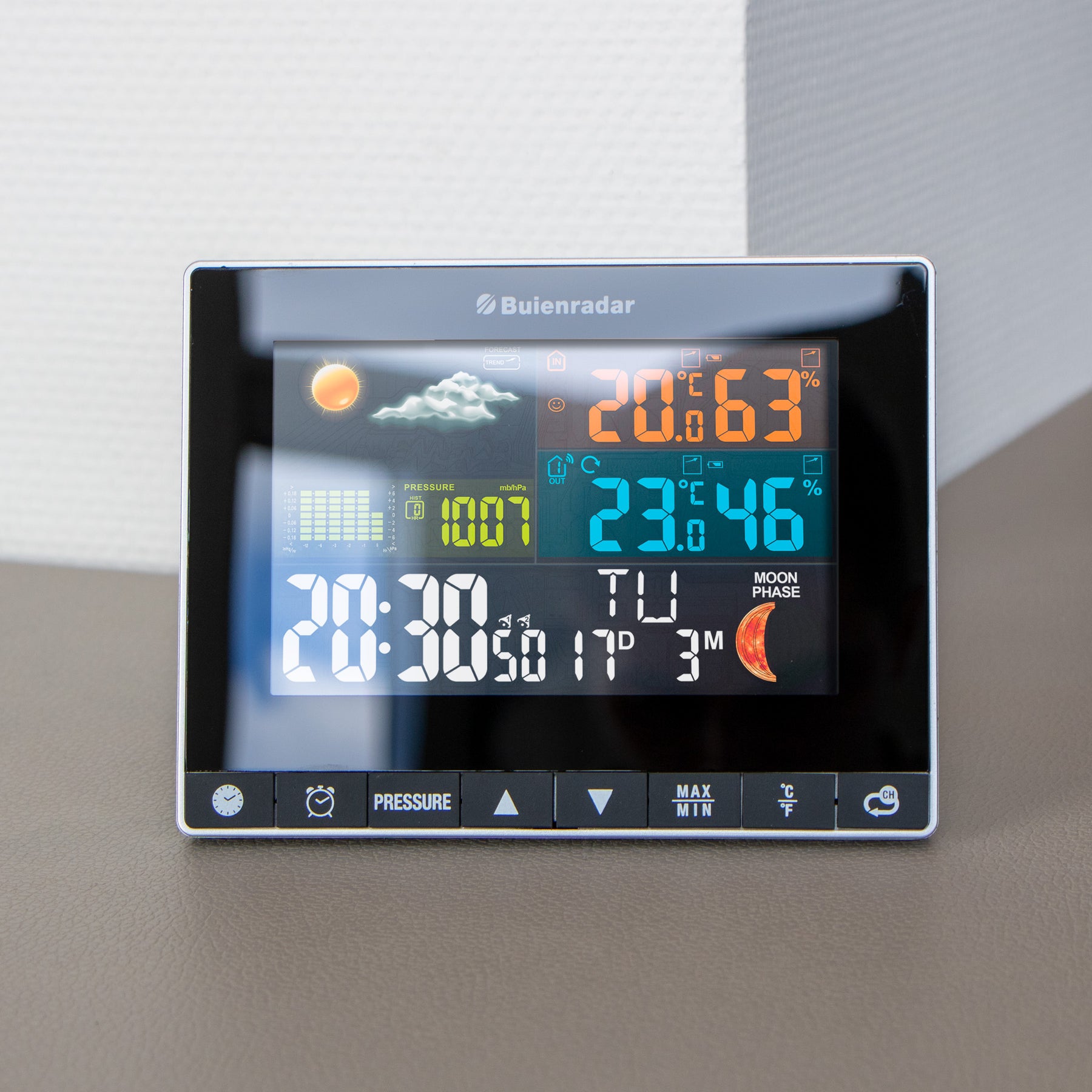 Die Buienradar BR700 ist eine Wetterstation mit drahtlosem Außensensor. Mit dieser 3-in-1-Wetterstation sind Sie über die aktuellen Wetterbedingungen in Ihrer Umgebung immer im Bilde. Temperatur, Luftfeuchtigkeit und Luftdruck werden direkt auf dem übersichtlichen Display angezeigt.