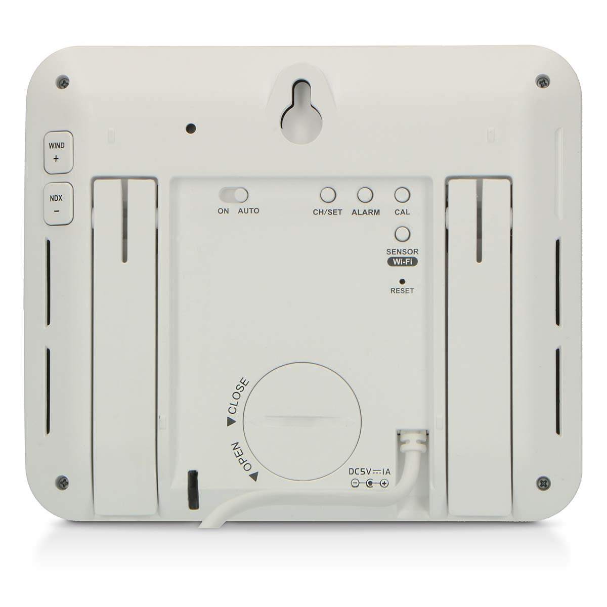 - Das Innengerät wird über ein Netzteil (im Lieferumfang enthalten) betrieben und verfügt über eine Pufferbatterien (1 x CR2032 im Lieferumfang enthalten)