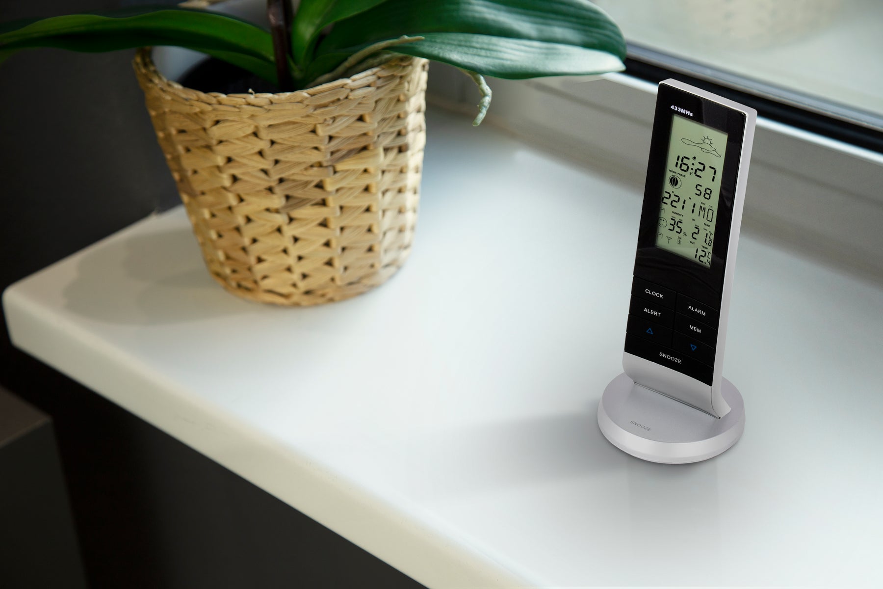 - Mit ewigem Kalender und einem Alarm. Sie können den Apparat als Wecker verwenden und umfassend informiert über das Datum, die Zeit und die Wetterprognose wach werden.