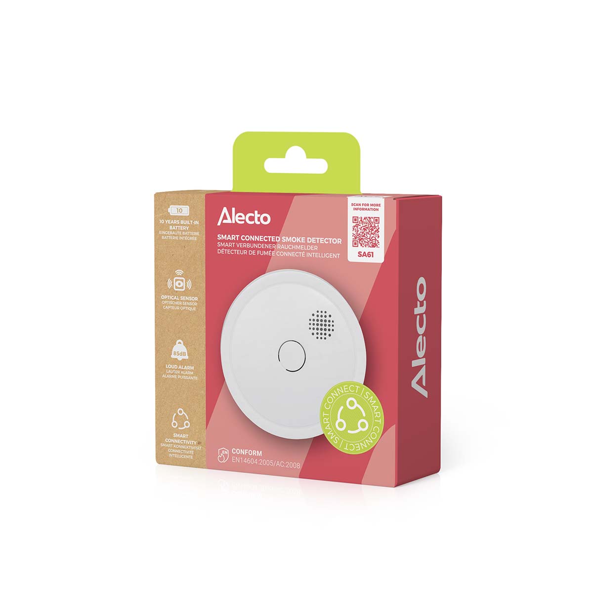 Der Rauchmelder Alecto SA61 kann drahtlos mit anderen Rauchmeldern verbunden werden, was für einen zusätzlichen Brandschutz sorgt. Ihre Umgebung ist optimal geschützt, denn wenn ein Rauchmelder Rauch oder Feuer erkennt, schlagen auch alle anderen angeschlossenen Rauchmelder Alarm. Dieser Rauchmelder, der kabellos vernetzt werden kann, verfügt über eine Batterie und einen optischen Sensor, die beide 10 Jahre halten. Mit dem SA61 haben Sie 10 Jahre lang die Gewissheit, Ihre Umgebung abgesichert zu haben. Und natürlich entspricht dieser Rauchmelder den höchsten europäischen Zertifizierungen und Anforderungen.