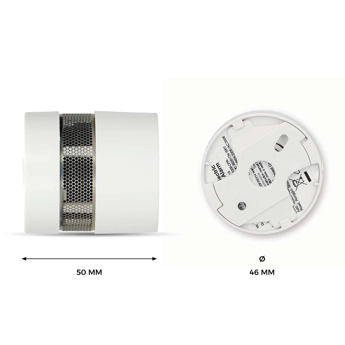 Dieser kleine Rauchmelder hat einen Durchmesser von 1,8 Zoll und wird mit einer Bodenplatte, Schrauben und Dübeln für eine einfache und schnelle Montage geliefert. Am besten wird er an der Decke verschraubt. Durch seine geringe Größe fällt er kaum auf. Es sei denn, er löst Alarm aus.